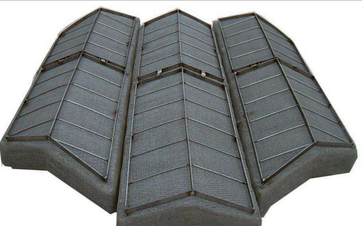 2、條形網(wǎng)塊:條形網(wǎng)塊是目前使用最普遍的結(jié)構(gòu)。它是用絲網(wǎng)一層層地平鋪,鋪至規(guī)定層數(shù),再在網(wǎng)層上面與下面各放一塊格柵,然后將網(wǎng)層壓至所需厚度尺寸,用定距桿與鉤使其成為一整塊。條形網(wǎng)塊的形狀與尺寸,隨公稱直徑與分塊數(shù)量而變化。